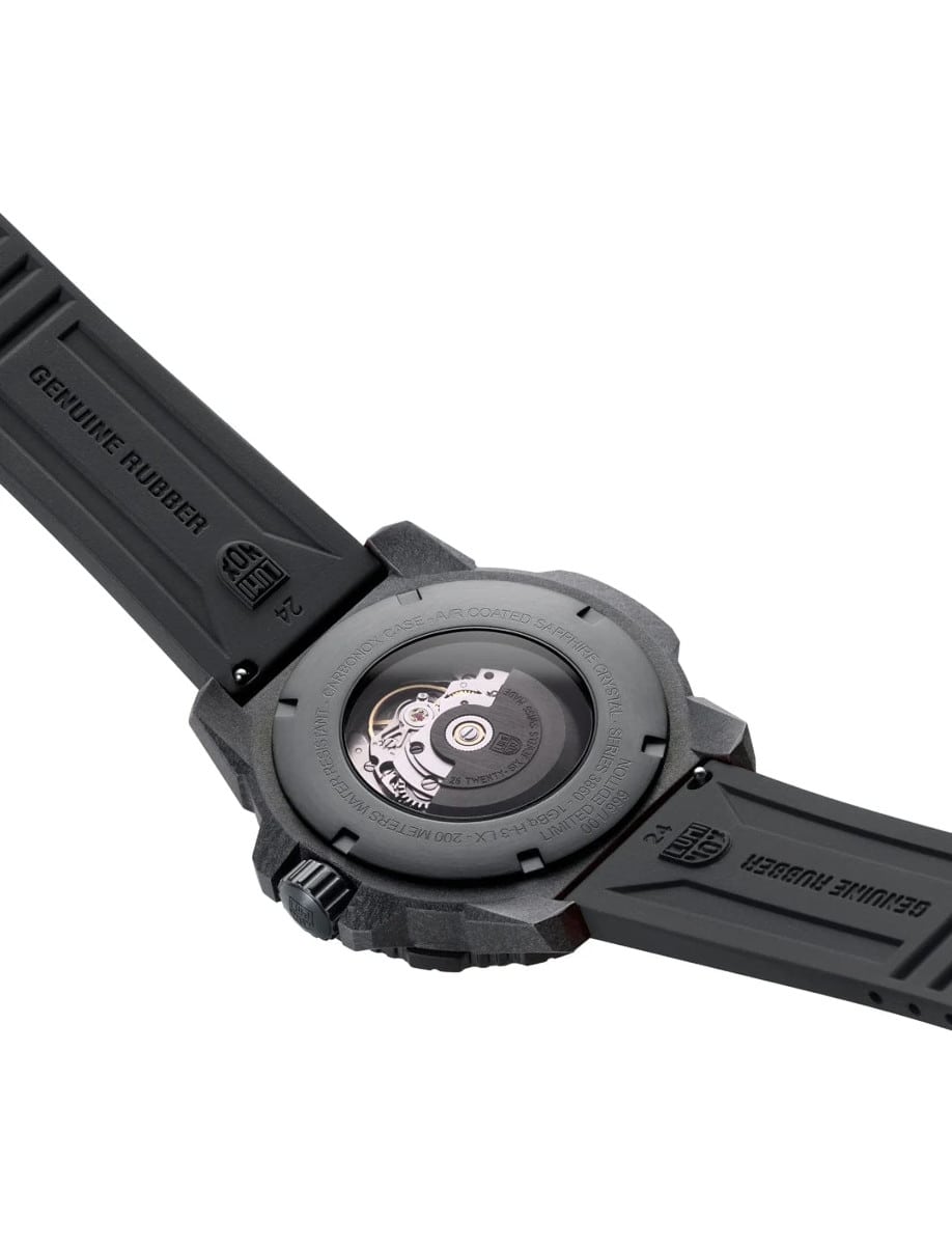 | Case Description | IP plated black 316L Stainless steel screw in, Uni-directional black IP plated 316L stainless steel bezel, Screw-In Crown, See-Through Case Back |