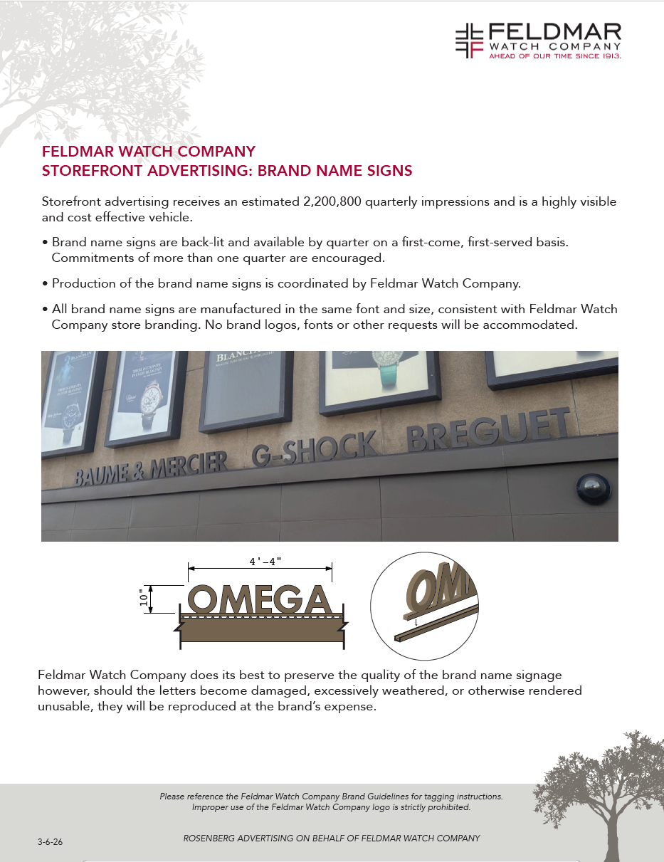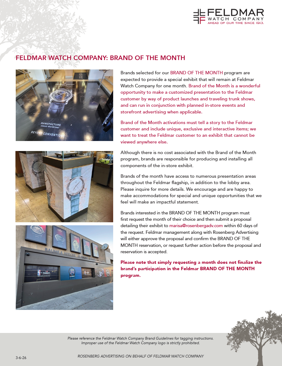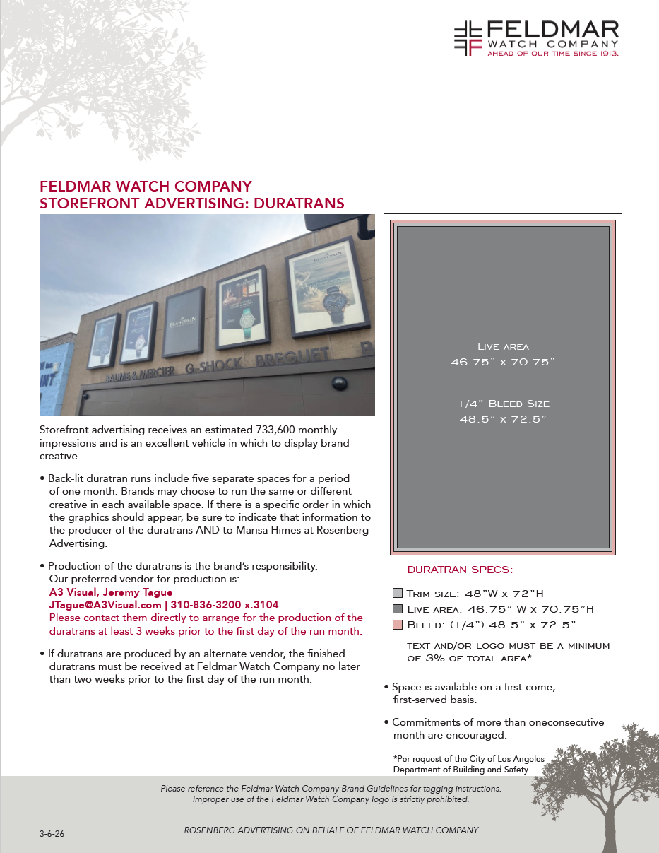 Protected: Resources This content is password-protected. To view it, please enter the password below. Password: 2025 Feldmar Co-Op Advertising Program 2025 Feldmar Co-op Advertising Program view/download Feldmar Co-op Advertising Specs and Info Digital Advertising Specs view/download Paid Search Specs view/download Paid Social Specs view/download Showroom Duratran Specs view/download Storefront Name Sign Specs view/download Storefront Duratran Specs view/download Outside Vendor Co-Op Advertising Specs LA Magazine Specs view/download Outfront Billboard Specs 36x10 view/download Outfront Billboard Specs 48x14 view/download Reference Brand Usage Guidelines view/download Logos view/download Brand of the Month Info Sheet view/download Event Info Sheet view/download Flagship Floor Plan view/download Feldmar Case Specs view/download
